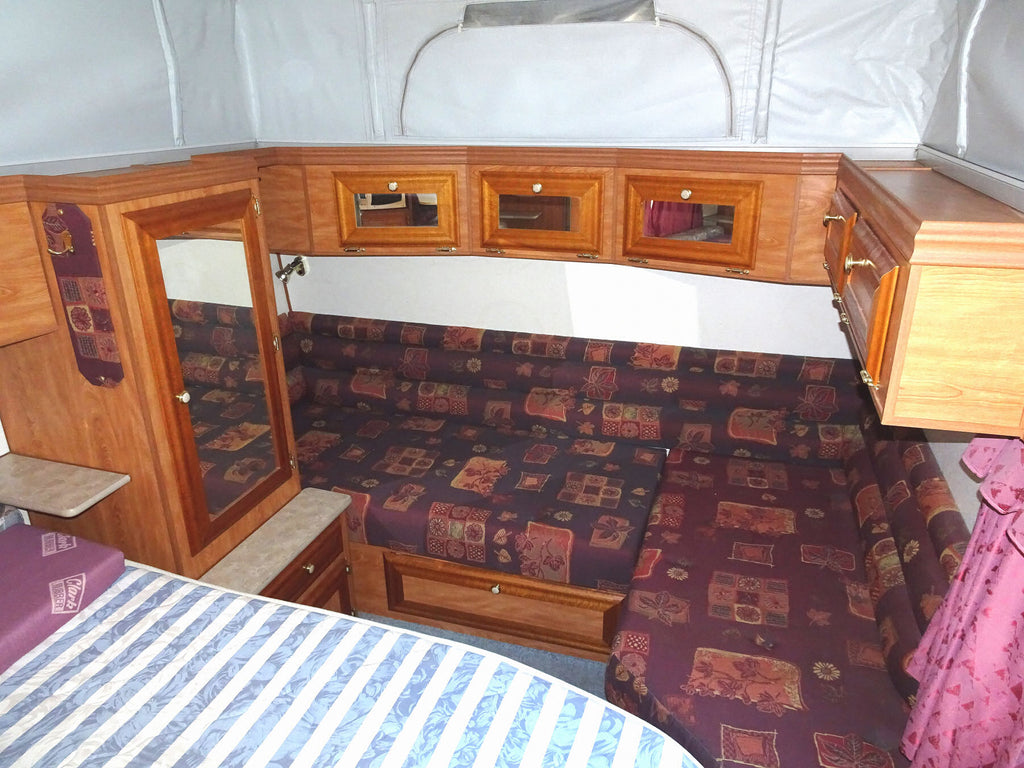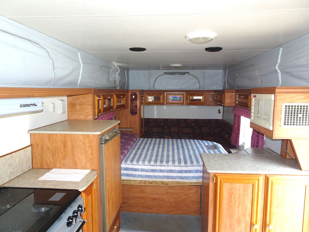 This Coromal 'Seka 600' Mirage Series tandem pop top features 'L' dinette, side kitchen, 4 burner/grill, microwave, raised Electrolux 3 way fridge (gas/electric/12v), mains pressure tap, island double bed with innerspring mattress (extendable), Heron 3.0 air conditioner - heating/ cooling, hand basin, rear lounge, Panasonic CD player, security door, front boot, bumper bar, spare wheel, pole carrier, ezy tow independent suspension & Aussie Traveller Coolbah awning with walls. Exceptional presentation.