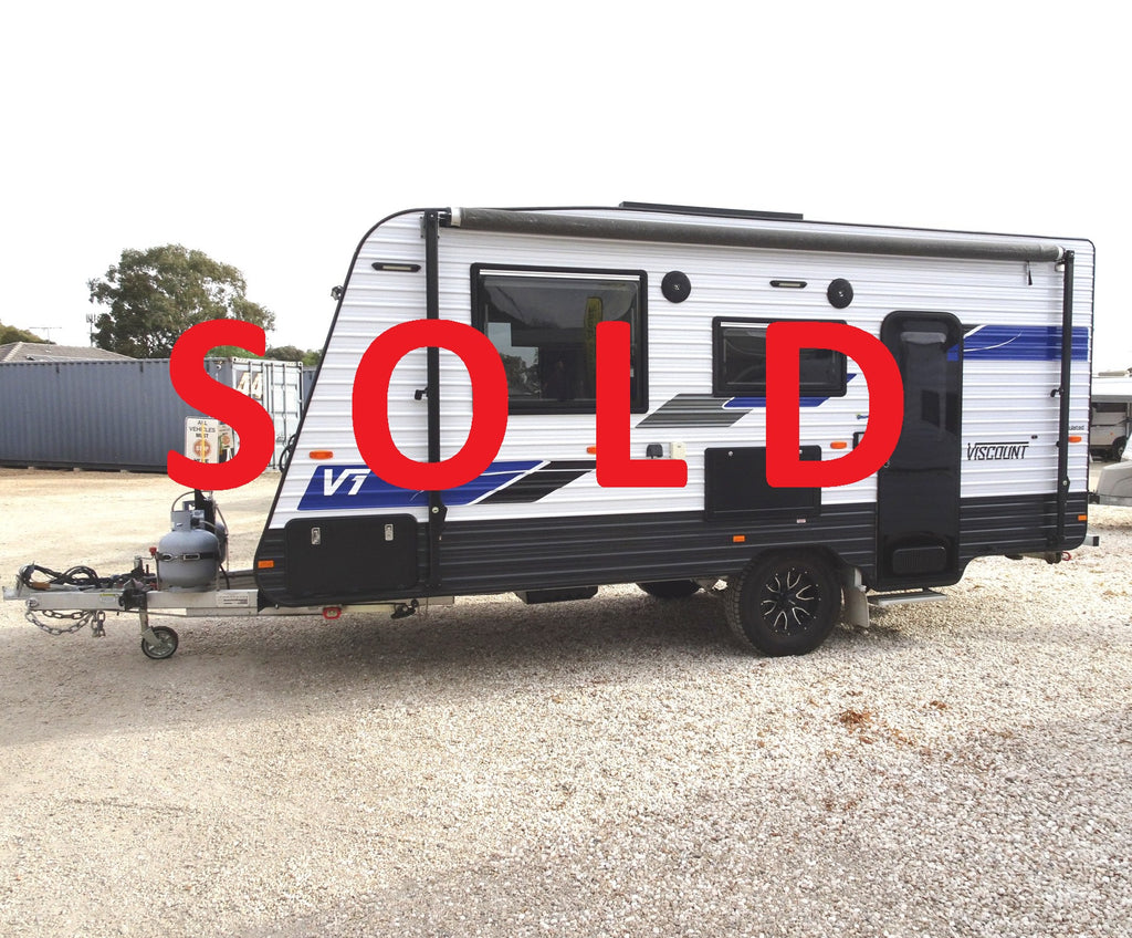 2022 VISCOUNT V1 18'6" SINGLE AXLE CARAVAN. This like new caravan is in immaculate condition. The caravan has Front Double bed with innerspring mattress and bolster, L-Shaped Dinette and dining table, Mid side kitchen, 2x water tanks, Grey Water tank, mixer tap & mains tap, Swift Hot Water Service (240v/ LPG), Thetford Caprice Gas Only 4- Burner Cooktop/ Grill/ Oven, NCE Microwave, Finch Rangehood, Thetford 138L N4141A 3-way (240v/LPG/ 12v) 2 Door fridge/ freezer, Separate ensuite, Thetford Cassette Toilet, NCE Washing Machine, Gree Roof Top Reverse Cycled Airconditioner, 2x Sirocco Fans, AKAI 24" TV, Finch Stereo System with 2x interior speakers, Winegard Wind Up Antenna with Booster, 2 x Exterior Speakers, Upgraded LED Lights Package, Front & Rear LED light bars, NCE Reverse Camera, ALKO ESC Stability Control, 2 x 9kg Gas Bottles, Front Tunnel Boot, Picnic Table, Aussie Traveller Roll Out Awning, Drop Down Stabiliser Legs, Camec Security Door, Vantec Paint Protection, 135w Solar Panel with Solar Controller, 110ah AGM Battery with Projecta Battery Charger. Tare 2043kg